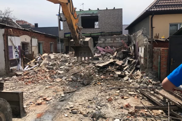 Если в доме что-то осталось — мебель, техника, стройматериалы — всё это аккуратно выносится. Также устанавливается ограждение, чтобы обломки и пыль не мешали соседям.